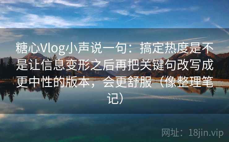 关于“搞定热度是不是让信息变形之后再把关键句改写成更中性的版本,会更舒服(像整理笔记)”这个想法,确实触及到了内容创作中一个非常有趣且实际的环节。我们不妨一起深入探讨一下。